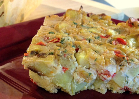 This is another recipe where I love to use my Vidalia Chop Wizard. Place the entire baked potato onto the Chop Wizard blades and press down with the lid. Presto! The potatoes are the perfect size for this frittata.