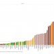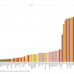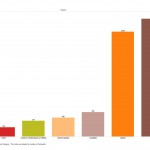It’s great if you can see all of the data in a single view – that’s Figure 1. (Be sure to click on the Figure to get the expanded version). In the view, each bar is a different food item, and it’s labeled with its common name. The bar height represents the calorie density of the food. The color of the bar indicates the category, or food group, of the item – such as fruit, whole grain, or nut. I attempted to make the colors memorable: vegetables are green (like spinach), fruits are red (like an apple), whole grains are tan (like bread), etc. Finally, the foods are sorted left to right, starting with the lowest CD foods on the left, progressing to the highest CD foods on the right.