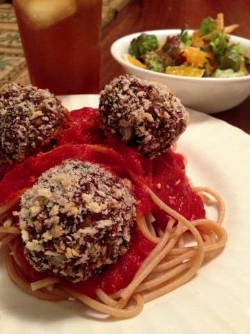 If you’re a fan of spaghetti and meatballs, here is your plant-based answer to that traditional favorite. This Fettuccini with Walnut Gobs is so much healthier than any meat-based version of meatballs. Nutritionally, this walnut and mushroom interpretation is far superior to traditional meat balls. They provide fiber, phytonutrients, and that uber protein – plant protein! You won’t find those beneficial goodies in old-fashioned meatballs. And talk about tender and moist! Back in our meat-eating days, we never had a meatball that was as good as these Walnut Gobs. We believe you won’t even think about going back to meat-based meatballs after a dinner of Fettuccini with Walnut Gobs.