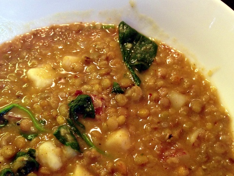 You can make this luscious soup on the stovetop in about 30 minutes. Or, toss the lentils, potatoes, and water in a slow cooker in the morning before you head to work. Cook on low for 8-10 hours, add the remaining ingredients when you return, and enjoy a warm, satisfying meal. You deserve it! A side serving of whole-grain pita bread is a nice touch. It’s great for dipping in the soup. Add fresh fruit for dessert, such as sweet orange segments, and you’ll be feeling incredibly nourished.