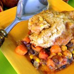 We love one-pot meals like this Mexican Skillet with Corn Dumplings. The corn dumplings are hearty and satisfying, made with corn flour rather than corn meal. We’ve also added corn kernels to the mix for even more texture and interest. The dumplings go so well with the savory, stew-like base of beans and vegetables. If you have trouble finding corn flour at your local grocery store, you can find it online on Amazon. We’ve used Bob’s Red Mill corn flour each time we make this, but you could use Masa Harina, a corn flour treated with lime and used to make corn tortillas. If you do, let us know how you like it, we haven’t tried that yet. Or, you can substitute the 1 cup of corn flour with 1/2 cup of corn meal, and add another 1/2 cup of whole wheat pastry flour to the mix.