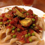 Indian-inspired spices cuddle up with mushrooms, peas, and whole-grain penne pasta in this dish we call Spicy Mushrooms and Peas over Penne. That was probably obvious. The sauce is thick, so it clings to any pasta shape you may like to use. Measure all your ingredients before you start cooking and you’ll feel like a pro as you breeze through this recipe.